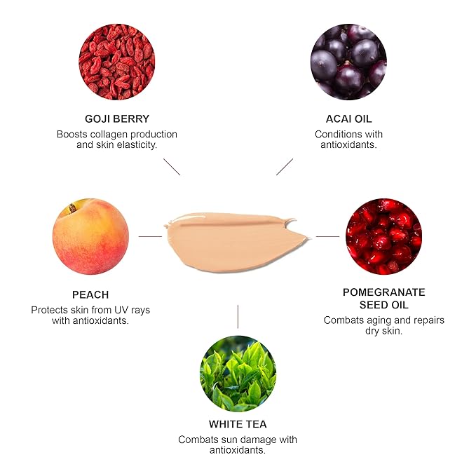 - MOTHER NATURE'S ANTI AGERS - A smooth, lightweight formula helps even out skin tone, perfect for a natural makeup look with the hydrating benefits of antioxidant-rich goji, acai, and pomegranate oils to help combat the appearance of pesky wrinkles.
