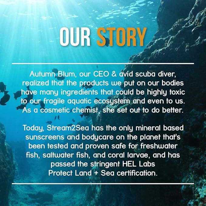 - OUR FORMULA IS REEF SAFE - Many chemical-based sunscreen are toxic to coral reefs and fish. Our product is a natural and eco-friendly mineral sunscreen. This has been tested and proven safe for humans, freshwater and saltwater marine life. Even our tubes are eco-conscious - all Stream 2 Sea containers are made from Sugarcane Resin. Happy seas and happy skin indeed!