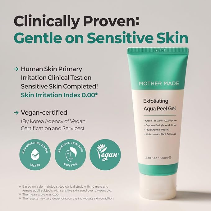 - Super Gentle Exfoliation To Skin - Unlike harsh microdermabrasion scrubs or strong chemical acid peels that dissolve proteins, MOTHER MADE Exfoliating Aqua Peel Gel is formulated with moisture-rich cellulose fiber that softly balls up with grime only, without strong chemicals or stress to skin