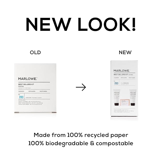 MARLOWE. Best Sellers Kit | No. 203 | Features Signature Body Scrub Soap Bar, Men's Facial Cleanser & Facial Moisturizer | Great Gift for Men