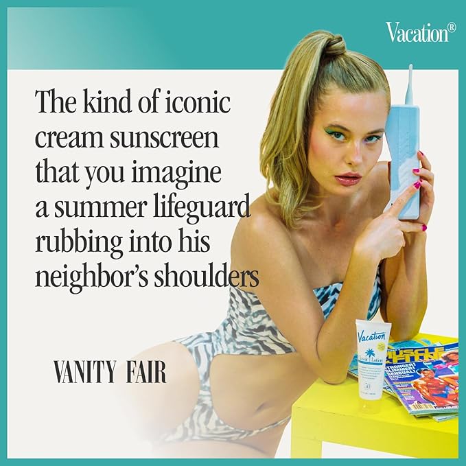 Vacation Classic Sunscreen Lotion SPF 50 & Air Freshener Bundle, Water-Resistant, Lightweight, Transparent on All Skin Tones, Dermatologist-Tested, Vegan, Travel Size, 3.4 Fl. Oz.