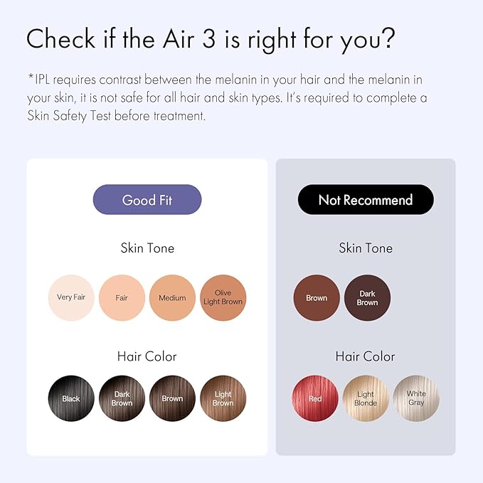 - Safe IPL Technology: Ulike IPL hair removal is designed with advanced technology to ensure safety and effectiveness for most skin and hair types, for both women and men. Check Ulike’s skin safety chart to get a safe and effective hair removal treatment. (Note: 1, Not suitable for tattooed and over-tanned skin, wounded areas, and pregnant. 2, It is a plug-in device, please keep the device always connected to power during the treatment. )