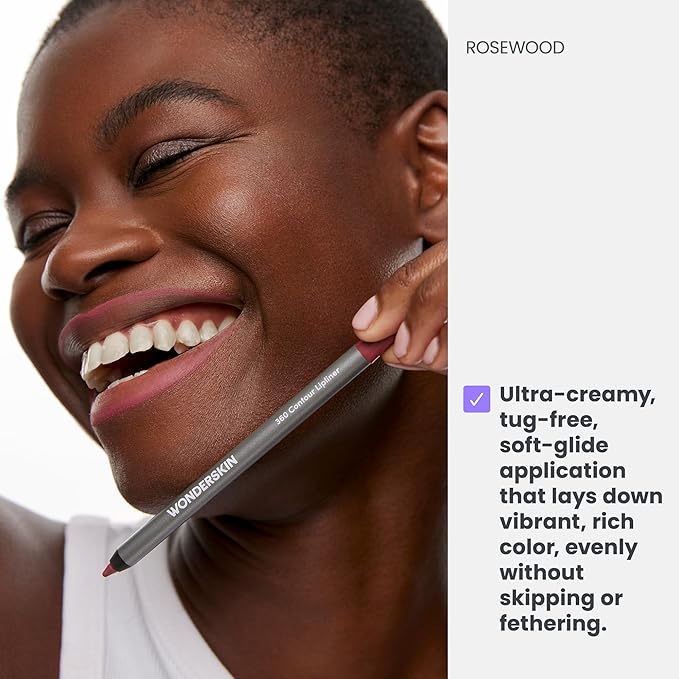 Wonderskin Lip Liner Pencil - 360 Contour Lipliner, Long Lasting, Sharpenable, Waterproof and Transfer-Proof Nude Lip Liner Pencil (Rosewood)