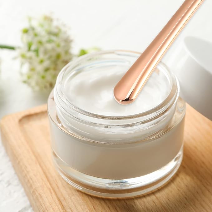 VOCOSTE 4 Pcs Makeup Spatula Mini Spoon, Eye Cream Massage Sticks Beauty Scoop, for Facial Cosmetic Face Cream, Zinc Alloy 2.32"x0.30", Rose Gold Tone