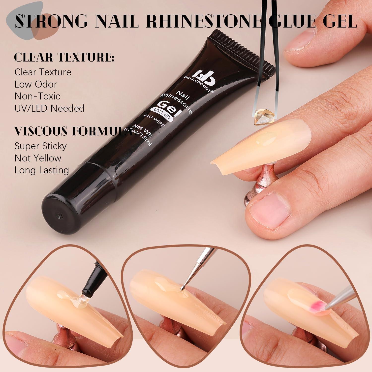 - đADHESIVE GEL GLUE: The rhinestones glue gel uses a special, non-toxic and eco-friendly formula with strong tackiness, adhesion, and fluidity for easily applying decorations. It is a type of UV gel glue. After proper curing under a UV/LED lamp, the glue dries clear with superior bonding strength that can last a few weeks without falling off. With the designed tip, you can easily and conveniently apply the glue to the nail bed or the surface of false nails.
