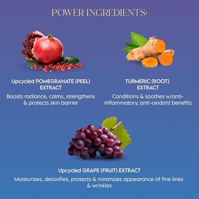 - Hydrating Excellence: Our hydrating serum absorbs deep into the skin, enriched with antioxidants and upcycled Grape and Pomegranate Extracts to replenish moisture and leave your skin with a long-lasting moisture and glow.
