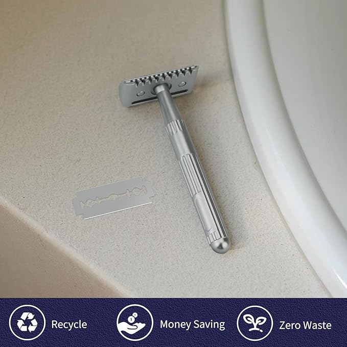 - Eco-Conscious & Built to Last: Shaving with our reusable metal safety razor - a zero-waste essential for eco-friendly shaving. Crafted from long-lasting, fully recyclable metal, this vintage-inspired double edge razor saves money and reduces environmental impact. With the right care and maintenance, it can last a life, aligning with sustainable lifestyles. (No parts to replace, just replace standard safety razor blades) Change the way you shave, choose our single blade razors for men and women