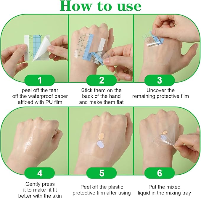 - 【Easy to Use】First tear off the waterproof paper with PU film, stick professional makeup artist supplies stickers on the back of your hand and press flat. When using, just tear off the plastic protective film. The operation is simple and convenient, no need to wash your hands saving you more time and energy.
