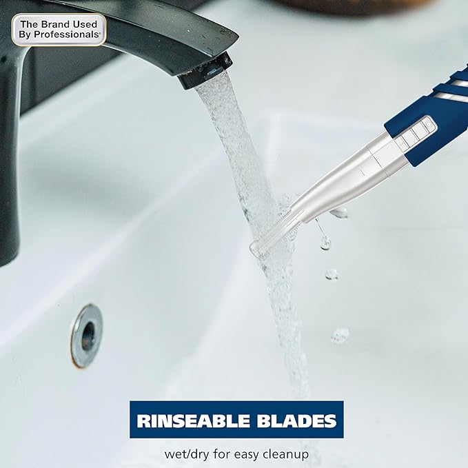 - Rinseable Blades – Our hair removal trimmer head contains rinsible high-quality stainless-steel blades that are easy to use & clean; Simply detach them from the trimmer body, rinse with water, allow to fully dry and then reattach.
