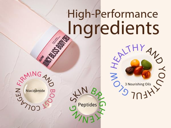 SOLME Brazilian Bum Bum Body Lotion Bouncy Bliss | Skin Tightening Body Butter with Coconut & Jojoba Oil, Collagen & Avocado Extract | Glowing Skin | Peach Vanilla Scent | K-Beauty, 6.76 fl. oz.