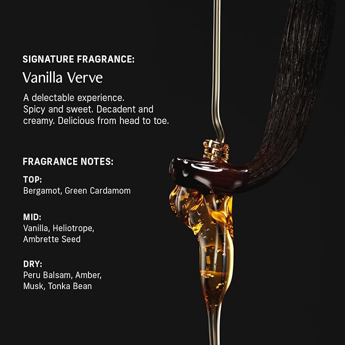 - VANILLA VERVE: Vanilla, bergamot, amber, and Peru balsam create a harmonious balance of creamy sweetness, citrus brightness, and warmth. We developed Vanilla Verve for a delicious all-day scent that's spicy, sweet, and creamy.