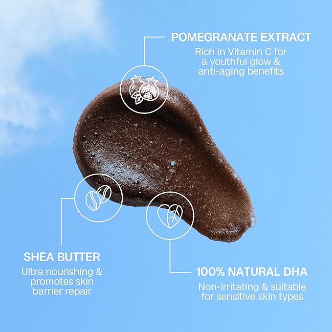 - ๐๐๐ฑ๐ฟ๐ฎ๐๐ถ๐ป๐ด, ๐๐ฎ๐๐-๐๐ฟ๐๐ถ๐ป๐ด ๐๐ผ๐ฟ๐บ๐๐น๐ฎ ๐ณ๐ผ๐ฟ ๐ฆ๐บ๐ผ๐ผ๐๐ต, ๐ฅ๐ฎ๐ฑ๐ถ๐ฎ๐ป๐ ๐ฆ๐ธ๐ถ๐ป: Our self tanner is infused with moisturizing ingredients like shea butter, leaving your skin smooth and hydrated while developing a bronze self tanning resut that lasts for days. Ideal for those who want a hydrating self tanner that nourishes the skin as it tans, without the sticky residue or dryness of traditional formulas.