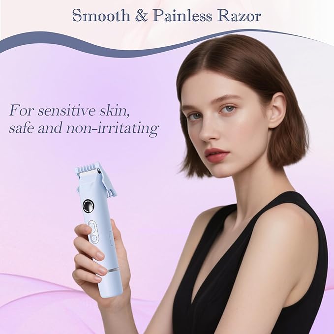- ✨【Unique Design】Our electric razor for women comes with a built-in LED display that clearly shows when the “LONG / SHORT” upper and lower heads are working and when the LED light is on. The built-in LED light clearly illuminates the skin surface, allowing for precise shaving of every hair even in dim conditions. The charging port of our body razor is equipped with a waterproof silicone plug that prevents water from entering the charging port and damaging the bikini shaver during wet use
